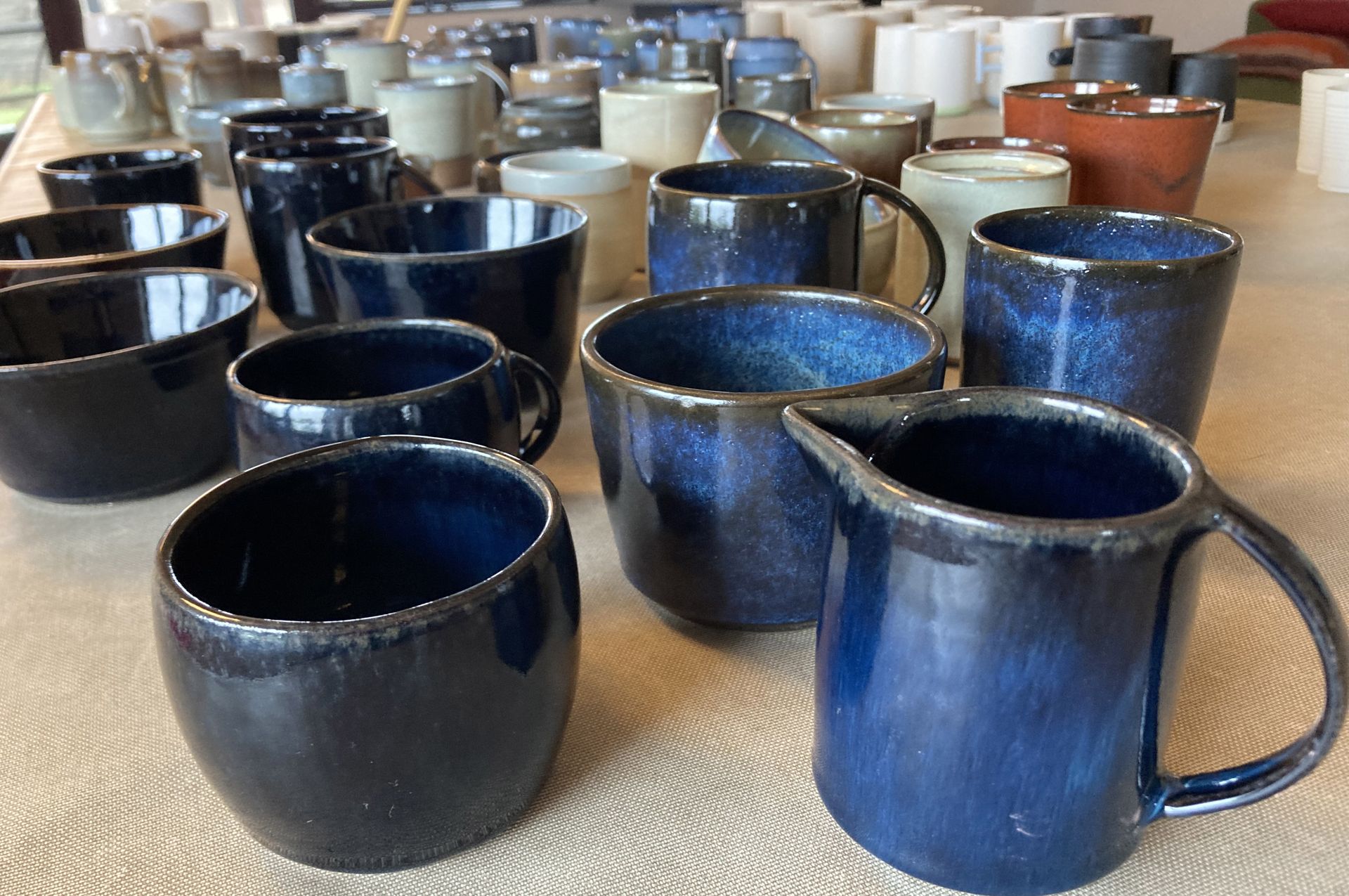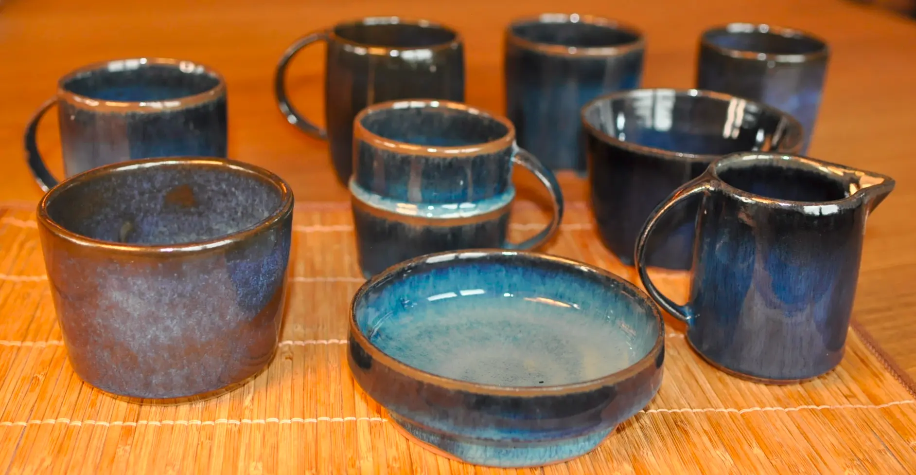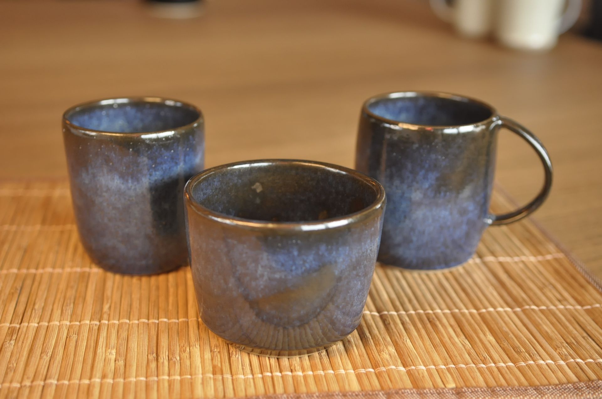 Bleu Oase de chez Colpaert, un émail réactif de haute qualité qui crée des nuances profondes et vibrantes. Chaque pièce révèle des effets de cristallisation uniques, allant du bleu pétrole à l'indigo, avec un élégant liseré brun sur les arêtes.