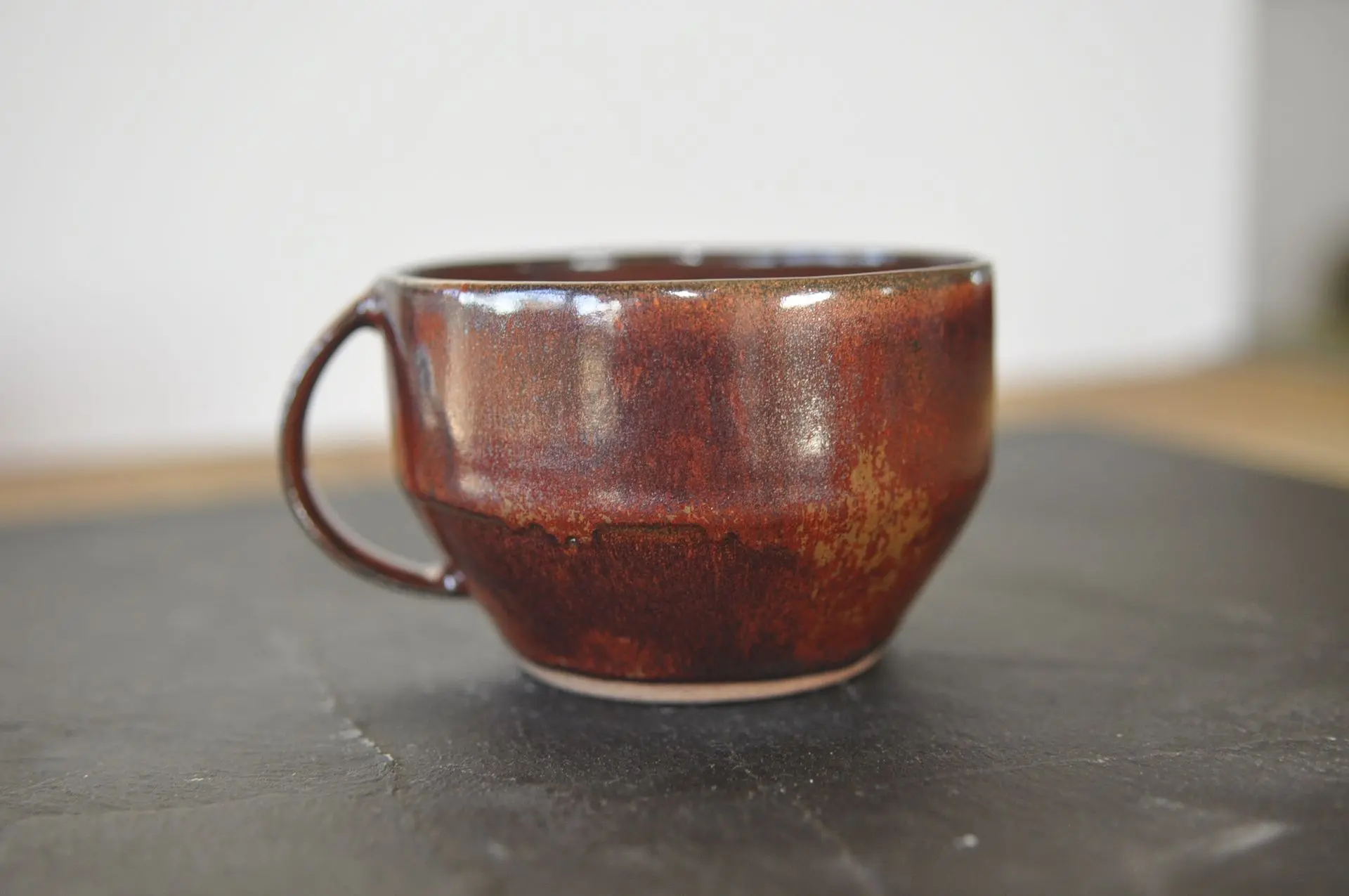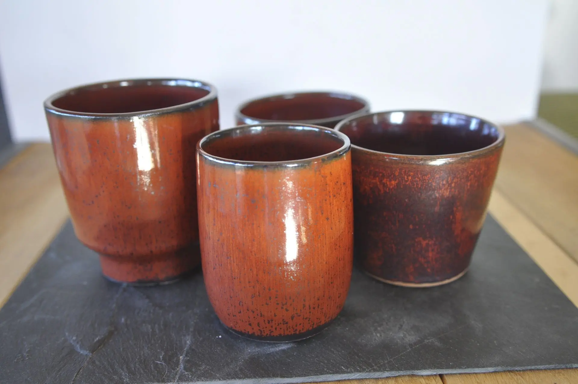 Cette série se distingue par son émail Havana, une teinte chaleureuse aux nuances ambrées et tabac qui rappelle l'esthétique des ateliers de poterie vintage. Cet émail réactif dévoile une grande richesse de textures, allant du caramel brûlé à l'acajou profond, avec de superbes effets de mouchetures sombres qui donnent à chaque pièce un aspect "cuir vieilli" unique.